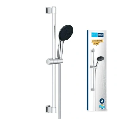 GROHE Vitalio Start 110 QuickFix Shower Set (Round 11 cm Hand 2 Sprays: Rain & Jet, Anti Limescale System, Hose 1.75 m, Rail 60 cm), Easy to Fit with QuickGlue, Chrome, 26951001