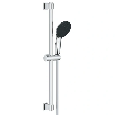 Grohe Vitalio Start 110 Shower Rail Set - 2 Spray Settings - Chrome (27948001). The GROHE Vitalio Start 110 shower set is the perfect start to your bathroom makeover. The 110mm hand shower features 2 sprays to suit different moments: soothing Rain eases stress, while the focused Jet is ideal for rinsing hair after shampooing. Both are easy to access using the innovative GROHE SmartSwitch diverter on the back of the shower head. GROHE SpeedClean enables you to brush the nozzles free of limescale with just a finger. The ShockProof silicone ring protects the hand shower itself, or the shower tray or bathtub, from damage if it’s accidentally dropped. The package includes the VitalioFlex Trend 1750mm shower hose and the Vitalio Universal 600mm shower rail. No tools required – thanks to the QuickFix promise, installation is surprisingly easy! The Universal Mounting System fits all standard shower hoses – just screw the hose in place. And the GROHE ProGrip nuts of the hose have a knurled surface for optimal grip and easy tightening. And the holder can be screwed (screws and dowels included) or, for an even more convenient solution, glued! All you need is 2 x GROHE QuickGlue Set S (41247000, sold separately). The holding force is max. 20kg! If you need some extra guidance, watch our QuickVideo or have a look at the QuickGuide. Consisting of: Shower Head Vitalio Start 110, Shower Rail Vitalio Universal 600 mm (27724), Shower Hose VitalioFlex Trend 1750 mm 1/2" x 1/2" (28742). GROHE Water Saving - Less water, perfect flow. GROHE SmartSwitch - easily rotate the dial to enjoy your preferred spray option. GROHE DreamSpray perfect spray pattern. GROHE Long-Life finish. GROHE FastFixation (adjustable upper bracket for existing drill holes). Adjustable glider (turn and glide shower holder). SpeedClean anti-limescale system. Inner WaterGuide - inner insulation for surface and scalding protection. ShockProof silicone ring prevents damage caused by a shower falling. Maximum flow rate (at 3 bar): 8.5 l/min. Min. recommended pressure 0.2 bar. Suitable for instantaneous heater. Suitable for screwing (including screws and dowels) or gluing (GROHE QuickGlue S 41247000 sold separately - 2 x needed). Holding force: max. 20 kg. The specified holding capacity is valid for static (slowly applied) load and intended use only. @Jf8CTm99fWE@ @gBztzPQ2kSI@ Genuine brand new Grohe product, covered by a Grohe manufacturer's guarantee.