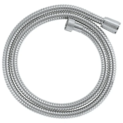 Grohe Vitalioflex Metal Long-Life 1.25m Shower Hose - Chrome (22106000). This GROHE VitalioFlex Metal Long-Life shower hose offers functionality and easy fitting for your bathroom upgrade, and with a length of 1250mm is ideal for use with a hand shower in the bathtub. This cleverly designed GROHE Long-Life strengthened model is built to revel in hard work and can withstand water pressure up to 16 bar, tension up to 75kg and heat up to 75°C. The AntiFold design ensures it won’t bend and end up with annoying kinks. Plus the GROHE Long-Life Shine chrome finish is durable and easy to maintain. No tools needed – installation is surprisingly easy! Simply screw the shower hose on: The universal connections are compatible with all standard hand showers and mixers. And the GROHE ProGrip nuts have a knurled surface for optimal grip and easy tightening. If you still need some guidance, watch our QuickVideo or have a look at the QuickGuide. 1250 mm. material: metal. GROHE Long-Life strengthened model. pressure resistance up to 16 bar. tensile strength 750 N. heat resistance 75°C. AntiFold bendproof. universal connection G 1/2" x 1/2". GROHE ProGrip with knurl structure. GROHE Long-Life finish. @4m3gAekd2VE@ Genuine brand new Grohe product, covered by a Grohe manufacturer's guarantee.