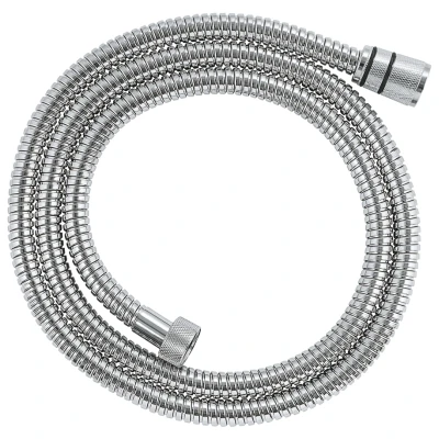 Grohe Vitalioflex Metal Long-Life 1.5m Shower Hose - Chrome (22101000). This GROHE VitalioFlex Metal Long-Life shower hose is the ideal choice for any modern bathroom makeover, with its 1500mm length suited to either a shower system or shower rail set. This cleverly designed GROHE Long-Life strengthened model is built to revel in hard work and can withstand water pressure up to 16 bar, tension up to 50kg and heat up to 75°C. The AntiFold design ensures it won’t bend and end up with annoying kinks, while the TwistStop rotation cone prevents the hose from twisting. Plus the GROHE Long-Life Shine chrome finish is durable and easy to maintain. No tools needed – installation is surprisingly easy! Simply screw the shower hose on: The universal connections are compatible with all standard hand showers and mixers. And the GROHE ProGrip nuts have a knurled surface for optimal grip and easy tightening. If you still need some guidance, watch our QuickVideo or have a look at the QuickGuide. 1500 mm. Material: metal. Rotation cone for TwistStop function. GROHE Long-Life strengthened model. Pressure resistance up to 16 bar. Tensile strength 500 N. Heat resistance 75°C. AntiFold bendproof. Universal connection G 1/2" x 1/2". GROHE ProGrip with knurl structure. Cone with silicone tape to prevent turning of hand shower during usage. GROHE Long-Life finish. @4m3gAekd2VE@ Genuine brand new Grohe product, covered by a Grohe manufacturer's guarantee.