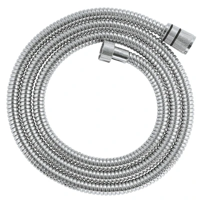 Grohe Vitalioflex Metal Long-Life 1.75m Shower Hose - Chrome (22100000). This GROHE VitalioFlex Metal Long-Life shower hose is perfect in any modern bathroom and with a length of 1750mm ideal for a shower system or shower rail set. This cleverly designed GROHE Long-Life strengthened model is built to revel in hard work and can withstand water pressure up to 16 bar, tension up to 50kg and heat up to 75°C. The AntiFold design ensures it won’t bend and end up with annoying kinks, while the TwistStop rotation cone prevents the hose from twisting. Plus the GROHE Long-Life Shine chrome finish is durable and easy to maintain. No tools needed – installation is surprisingly easy! Simply screw the shower hose on: The universal connections are compatible with all standard hand showers and mixers. And the GROHE ProGrip nuts have a knurled surface for optimal grip and easy tightening. If you still need some guidance, watch our QuickVideo or have a look at the QuickGuide. 1750 mm. Material: metal. Rotation cone for TwistStop function. GROHE Long-Life strengthened model. Pressure resistance up to 16 bar. Tensile strength 500 N. Heat resistance 75°C. AntiFold bendproof. Universal connection G 1/2" x 1/2". GROHE ProGrip with knurl structure. Cone with silicone tape to prevent turning of hand shower during usage. GROHE Long-Life finish. @4m3gAekd2VE@ Genuine brand new Grohe product, covered by a Grohe manufacturer's guarantee.