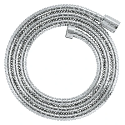 Grohe Vitalioflex Metal 1.75m Shower Hose - Chrome (27503001). If you’re making over your bathroom and want to take the hassle out of it, this GROHE VitalioFlex Metal shower hose is designed to be easy to install by yourself and give a lifetime of smooth operation. The 1750mm length is ideal with a shower system or shower rail set. This sturdy hose is built to revel in hard work and can withstand water pressure up to 5 bar, tension up to 50kg and heat up to 70°C. The AntiFold design ensures it won’t bend and end up with annoying kinks, plus the GROHE Long-Life Shine chrome finish is durable and easy to maintain. No tools needed – installation is surprisingly easy! Simply screw the shower hose on: The universal connections are compatible with all standard hand showers and mixers. And the GROHE ProGrip nuts have a knurled surface for optimal grip and easy tightening. If you still need some guidance, watch our QuickVideo or have a look at the QuickGuide. 1750 mm. Material: metal. Pressure resistance up to 5 bar. Tensile strength 500 N. Heat resistance 70°C. AntiFold bendproof. Universal connection G 1/2" x 1/2". GROHE ProGrip with knurl structure. GROHE Long-Life finish. @4m3gAekd2VE@ Genuine brand new Grohe product, covered by a Grohe manufacturer's guarantee.