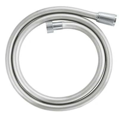 Grohe Vitalioflex Silver Long-Life 1.25m Shower Hose - Chrome (22110000). This GROHE VitalioFlex Silver Long-Life shower hose will suit any modern bathroom look, and with the QuickFix package to guide you it’ll be fitted in no time. The 1250mm length is ideal for use with a hand shower in the bathtub. This cleverly designed GROHE Long-Life strengthened model is built to revel in hard work and can withstand water pressure up to 12 bar, tension up to 50kg and heat up to 75°C. The smooth surface is easy to clean – one quick wipe with a dry cloth and it looks as good as new – and it won’t cause any damage if it comes into contact with the shower cubicle or bathtub. The AntiFold design ensures it won’t bend and end up with annoying kinks, while the TwistStop rotation cone prevents the hose from twisting. No tools needed – installation is surprisingly easy! Simply screw the shower hose on: The universal connections are compatible with all standard hand showers and mixers. And the GROHE ProGrip nuts have a durable GROHE Long-Life Shine chrome finish and a knurled surface for optimal grip and easy tightening. If you still need some guidance, watch our QuickVideo or have a look at the QuickGuide. 1250 mm. Smooth surface for easy cleaning. Rotation cone for TwistStop function. GROHE Long-Life strengthened model. Pressure resistance up to 12 bar. Tensile strength 500 N Heat resistance 75°C. AntiFold bendproof. Universal connection G 1/2" x 1/2". GROHE ProGrip with knurl structure. GROHE Long-Life finish. @4m3gAekd2VE@ Genuine brand new Grohe product, covered by a Grohe manufacturer's guarantee.