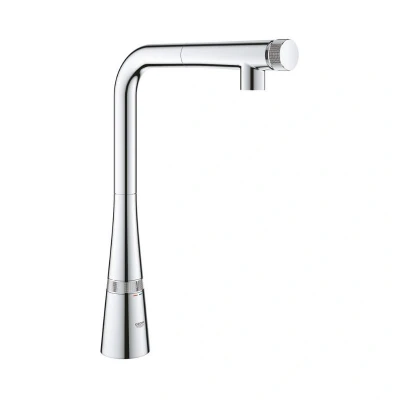 GROHE Zedra Smartcontrol Kitchen Tap High L Shape with Pull Out Spray Head, 140 Swivel Range, Chrome Finish Water Saving 31593002