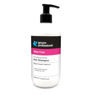 MILD AND GENTLE FORMULA: The Baby Fresh Shampoo is specially formulated with a mild and gentle formula, making it ideal for puppies and pets with sensitive skin. SOFT AND FRAGRANT: Enjoy the soft baby powder fragrance that leaves your pet's coat smelling clean and fresh after each bath. SOOTHING PROPERTIES: Contains Aloe Vera which soothes and heals, as well as acting as a natural conditioner. MOISTURISES AND CONDITIONS: The gentle formula of the Baby Fresh Shampoo helps moisturise and condition your pet's fur, leaving it soft, shiny, and easy to manage. PROFESSIONAL QUALITY: Groom Professional is a trusted brand among professional groomers, ensuring that you're using a high-quality product for your beloved furry friend.