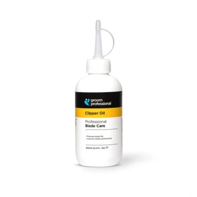 Groom Professional Clipper Oil This lightweight oil, used for lubricating blades and helping prevent them from over heating is suitable for all makes of clippers and is excellent value for money. Size: 200ml dispenser bottle For best results use in conjunction with our Groom Professional 4 in 1 Clipper Spray to help cool, clean, lubricate and disinfect blade during and after clips For optimum blade care also use our Groom Professional Klip Well Blade Wash to thoroughly clean and disinfect blades To use: Apply a small amount directly on to blades to keep them lubricated and to help prevent them from over heating. *Please note clipper oil is only for use on blades, NEVER apply to internal parts of the clipper such as the motor*