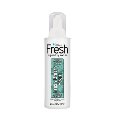 Fresh Breath Foam Easy to apply breath-freshening foam that targets those hard-to-reach areas. A quick and convenient solution to aid in oral hygiene, helping to keep teeth and gums healthy by preventing to build-up of plaque and tartar. Naturally sweetened with mint to provide a more pleasurable experience for the dog. Natural Mint flavour Promotes fresh breath Easy application 99% natural Free from Alcohol Ingredients: Aqua, Sorbitol, Glycerin, Cetylpyridinium Chloride, Sodium Benzoate, Polysorbate 20, Camellia Siensis Leaf Extract, Cosolvent FC Z-403, Zinc Citrate, Mentha Piperita (Peppermint) Oil, Citric Acid