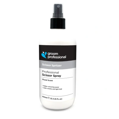 Groom Professional Scissor Spritzer Groom Professional Scissor Spirtzer is one of our most eagerly awaited products. During trails every one of the groomers and exhibitors who received a sample, all rated the product as excellent. If you use scissors then Scissor Spritzer is a must to reduce static, leave the hair easier scissored, as well as the comb gliding easily through the coat. Scissor Spritzer holds and adds volume the coat without making it sticky or leaving any residue. Simply spray on and comb in before scissoring to leave a beautiful finish. Available in 2 sizes (200 ml. 500 ml) Reduces Static Holds and adds Volume Won't leave any residue To Use: Simply spray on and comb in before scissoring to leave a beautiful finish. Note: This product can only be shipped to customers in the UK & Ireland.