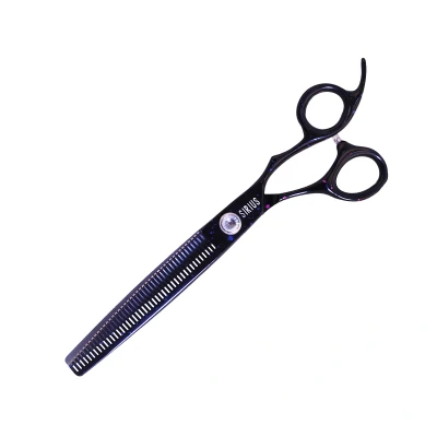 Groom Professional Sirius 7” 44 Tooth Fluffer The best-selling scissor from Groom Professional, Sirius perfectly represents this favourite brand by bringing reliability, style and function to your grooming routine. Made with 440c Japanese steel and expertly finished to easily cut through the thickest coats Sirius Fluffer Scissors The newest addition to the Sirius family, Fluffers are a hybrid scissor that combine elements of thinners, blenders and chunkers. Designed to take off more bulk than a standard thinner, fluffers have wider teeth and thinner gaps. This unique design results in more hair removed without the lines often left by straight scissors, creating a subtle blend. Level 2 Scissors Fluffer scissors Attractive design Removable finger inserts Adjustable tensions screw Coated to increase durability Convex blade 7 Inch 44 tooth 440c Japanese Stainless Steel Professional dog grooming scissors Scissor Types Safety – A small grooming scissor for dogs with straight-edged blades but a rounded tip to avoid punctures. Particularly useful for more delicate work in intricate areas. Straights – The original scissor; primarily designed to cut away large quantities of hair as efficiently as possible! Curved – 2 straight-edged blades but designed at a curve. Useful for a variety of situations, rounded styles, intricate areas or anything else that requires some more curves. Thinners – Two blades with teeth – perfect for thinning the coat, not necessarily cutting! Blenders – One straight-edged blade accompanied by a toothed blade – Perfect for blending to create well-balanced styles. Chunkers – Blenders but with thick gaps between the teeth. Perfect for styling and creating angles when you need a softer cut than a straight can provide. Designed for coats with volume. Fluffers – A hybrid scissor with thicker teeth and thinner gaps. These scissors remove more bulk than thinners while still leaving a softer, blended finish. Scissor Levels Level 1: Entry-level scissors – designed to remain sturdy and sharp for as long as possible. Best for those new to scissoring. Level 2: Professional-level scissors – Designed with durability and everyday use in mind. Great for professional backups or groomers just starting out. Level 3: Professional-level scissors – Designed to provide a high-quality finish while remaining durable for everyday use. Level 4: Elite-Level scissors – Made to the highest standards to provide a beautiful finish and expert cut. Level 5: The highest level of scissors – Designed to create the finest finish.