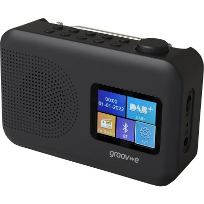 groov e Berlin DAB & FM Digital Radio Colour Screen LCD Display Built In Alarm Clock Bluetooth Connectivity Mains or Battery Operated Portable 60 Preset Stations Black