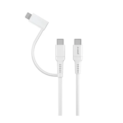 groov e Charging Cable 2 in 1 Multi Connector USB C to C/Lightning 3A for Fast Charging, 1m Transfer Cable, A Adaptor Included, Charger Compatible