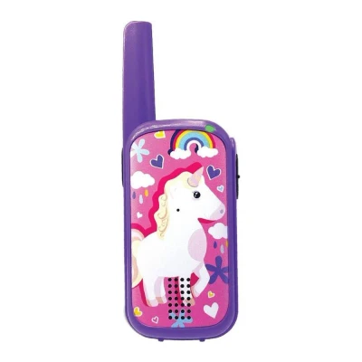 CUTIES WALKIE TALKIES - Designed with little explorers in mind, these kid-friendly walkie-talkies feature an ergonomic shape, simple Push-to-Talk operation, and clear sound quality; they're made for exciting outdoor adventures and imaginative play LONG RANGE WITH CLEAR SOUND - Stay connected up to 500 metres away with crisp and clear sound, making these walkie-talkies ideal for garden games, park outings, and playtime fun with friends and family KID-FRIENDLY DESIGN - Built for small hands, these lightweight and durable walkie-talkies are made from tough ABS plastic and feature an easy Push-to-Talk button, making communication simple and enjoyable; each Cuties Walkie-Talkie comes in a set of two EXCITING FEATURES & DESIGNS – Each walkie-talkie features a fun call ring and an LED indicator, enhancing playtime with sounds and visual signals; choose between the purple design with an adorable unicorn or the blue design with a cool, green dinosaur BATTERY-OPERATED FOR PORTABLE PLAY - No need for charging, these walkie-talkies run on standard batteries making them suited for on-the-go adventures, camping trips, and everyday fun without worrying about power