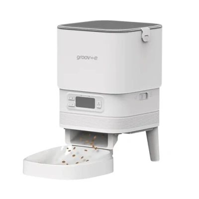 AUTOMATIC DRY FOOD FEEDER: Keep your cat or small dog fed on time with the Groov-e Pet-Tech automatic pet feeder. Designed for dry food, it holds up to 4L, reducing the need for constant refills TIMED MEAL SCHEDULES: Schedule up to 6 meals daily with flexible portion sizes, helping you manage your pet’s routine, control portions, and avoid missed meals even on busy days FOOD STAYS FRESH: The airtight, lockable lid keeps food dry, crisp, and protected, while preventing pets from sneaking extra portions between feeds DUAL POWER OPTIONS: Works with the included mains adaptor or 4x AA batteries (not included), allowing feeding to continue reliably even during power cuts DESIGNED FOR CONVENIENCE: The removable food tray and clear LED display make cleaning and scheduling easy, keeping feeding routines simple