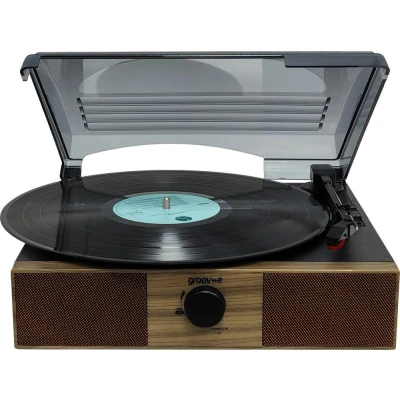 CurrysPop on a record and kick back with your favourite music on this Groov-e turntable. Its built-in speakers gives you decent sound, so you don't need to connect extra ones.Whether it's that one-hit single or an album you know by heart, it plays both 33 and 45 RPM records with ease. And you can connect your phone using Bluetooth to blast your favourite playlist without missing a beat. Good to know - The hinged cover keeps dust off and protects it from bumps or little mishaps - It quietly powers itself down when you're not using it, thanks to auto standby - Hook it up to any speaker or headphones using its 3.5 mm jack