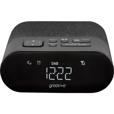 Groov e Roma DAB & FM Clock Radio Alarm with USB Charging Port LED Display Mains Operated Portable 40 Preset Stations Black