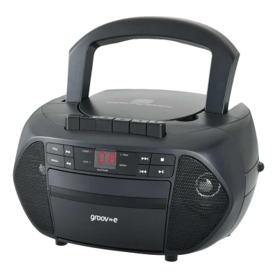 Groov e Traditional Boombox Portable Cassette Tape & CD Player with Radio, 3.5mm Aux Port, Headphone Socket LED Display, 2 x 1.2W Speakers Battery or Mains Powered Black