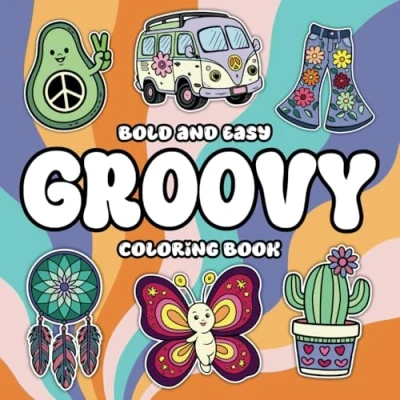 Groovy Vibes Coloring Book: 50 Simple and Large Book for Adults Kids, Activity Relaxation Featuring Illustrations (Bold Easy Book)