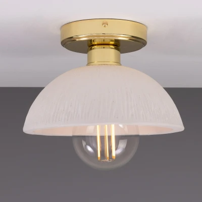 Grosseto Globe Pendant Ceiling Light Satin Brass Plate, Gloss White Glass