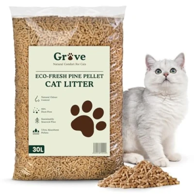 SUPERIOR NATURAL ODOUR CONTROL : Harness the power of 100% natural pine. Our premium wood pellets instantly neutralise harsh ammonia smells on contact, leaving a subtle, fresh forest scent without any artificial perfumes or chemicals. Keep your home smelling clean and fresh, naturally. 100% SUSTAINABLE & BIODEGRADABLE : Make the kind choice for your cat and the planet. Made from sustainably-sourced pine by-products, Grove pellets are fully biodegradable and compostable. A truly eco-friendly cat litter solution for the conscious pet owner. ULTRA-ABSORBENT & ECONOMICAL : Our high-density compressed pine pellets absorb more than 3x their weight in liquid. Pellets break down into sawdust upon contact, trapping moisture and making spot-cleaning easy. This long-lasting 30L bag offers exceptional value and means fewer trips to the shop. 99% DUST-FREE & GENTLE ON PAWS : Protect your cat's respiratory system and keep your home clean. Our pellets are triple-sifted for virtually no dust. The smooth, heat-treated pellets are non-tracking and won't stick to fur, making them perfect for all cats, including kittens and long-haired breeds. CHEMICAL-FREE & ALL-NATURAL : Purely pine. No additives, no binders, no glues. Just 100% natural wood. This lightweight 30L bag is easier to carry, pour, and store compared to heavy clay litters. A simpler, healthier choice for your pet and home.