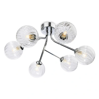 The Firstlight Groves 6-Light Semi-Flush Ceiling Fitting is a stunning and substantial fixture designed to be a focal point in any contemporary room. This attractive modern 6-light flush ceiling fitting features a brilliant chrome finish with multiple arms extending to hold six spherical clear glass shades. The design is evocative of a modern aesthetic, bringing sophistication and bright sparkle to the ceiling.This semi-flush fitting is ideal for rooms with lower ceilings due to its semi-flush design, which ensures it does not hang too low. The generous 480mm diameter ensures wide and powerful light coverage. The clear glass shades ensure the light is vibrant and unhindered, allowing the beauty of the bulbs to shine through and creating a brilliant, sparkling effect. It is ideal for use in living rooms, kitchens, bedrooms, and hallway areas.The fixture requires six standard G9 bulbs with a maximum wattage of 33W each (sold separately). The use of six lamps ensures ample light output for general room illumination. We strongly recommend using LED G9 capsule bulbs to provide maximum energy efficiency and brilliant, sparkling light output. Shop now at SimplyLED to secure this premium statement ceiling light.Requires 6 x G9 bulbs max 33W (sold separately).