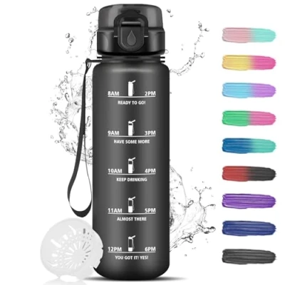 Safe and durable material: the 1L water bottle is made of imported food grade plastic, which is non-toxic and odourless, giving you a good drinking experience. The wide mouth design of the drinking bottle makes it easy to clean and fill ice cubes. The water cup can be used at a temperature of -10°-80°, and you can enjoy water within this temperature range. One-handed operation: the carbonated drinking bottle has a dust-proof spring bottle cap. You just need to turn the safety lock down and press the buckle lightly with one hand, and the lid opens so you can drink water quickly. Provides an easier and more convenient way to open the lid for boys, girls and people of all ages. Time Scale Design The motivational water bottle with unique motivational quotes and time markers always remind you to drink the right amount of water. The level mark on the bottle is perfect for measuring your daily water consumption, allowing you to stay hydrated throughout the day, making it a practical and beautiful necessity in your daily life. 100% LEAK PROOF DESIGN The silicone seal on the lid prevents leaks, and the clip-on safety lock prevents the lid from accidentally opening, so you don't have to worry about your water bottle leaks or getting damaged. The frosted texture of the water bottle allows for a better grip and prevents slipping. You will receive a strong, durable and shockproof water bottle. Perfect gift choice: the leak-proof water bottle is lightweight and comes with a portable lanyard on the bottle, you can hang it on a backpack or hold it in your hand and carry it with you easily. The water bottle is perfect for school, travel, sports, etc. At the same time, it is also an ideal gift for your children and loved ones.