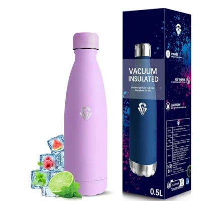 Keeps warm or cold: the stainless steel drinking bottle uses a unique double-layer vacuum insulation technology with vacuum sealed lid to keep your drinks cold for up to 24 hours or hot for up to 12 hours. Enjoy coolness and freshness in summer and warmth in cold winter - for all drinking needs at any time of year High-quality stainless steel material: the inner and outer walls of the stainless steel drinking bottle are made of 18/8 stainless steel, which does not contain BPA and phthalates, does not rust and ensures the purity of the water, so you and your children can enjoy healthy drinking water and protect the drinking water health of the whole family Leak-proof lid: the leak-proof lid of the thermos flask 0.5L has an integrated sealing ring made of food-safe silicone for 100% waterproof. Whether in your school bag or travel backpack - you don't have to worry about leaks. The slim bottle is suitable for backpacks and cup holders in the car and provides secure space for camping trips Easy to carry: this children's stainless steel drinking bottle is lightweight, lightweight and designed in a stylish cola style and sits comfortably in the hand. Suitable for water, coffee, tea and carbonated drinks. One bottle is enough for outdoor adventures, daily commuting, sports and fitness Perfect gift: the thermos bottle is finished with a durable powder coating, colourful and stylish. It is not only a practical drinking companion, but also a perfect gift to express friendship. Whether school, work, travel, hiking, cycling, camping or fitness - it is the perfect choice