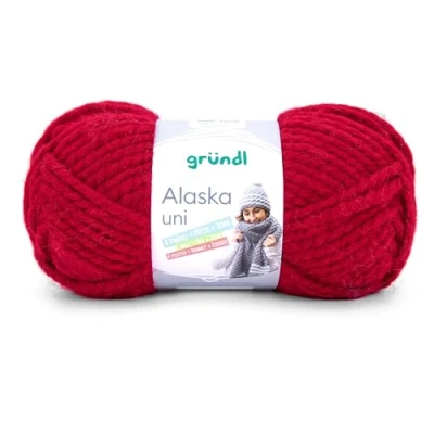 Gründl Alaska Plain Wool for Knitting, 80% Polyacrylic, 20% Wool, Thick 100 g, Red