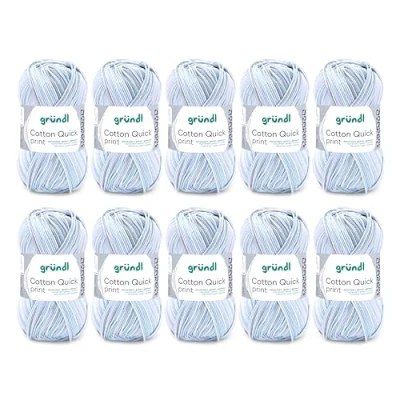 Gründl Cotton Quick Print Knitting/Crochet Yarn (Colourful Made of 100% Cotton, Oeko TEX Certified, 50 g / 125 m, Needle Size: 3 4, 1 x g), Mint Blue White Grey Mix Colour