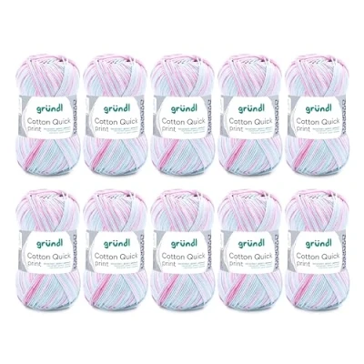 Gründl Cotton Quick Print Knitting/Crochet Yarn (Colourful Made of 100% Cotton, Oeko TEX Certified, 50 g / 125 m, Needle Size: 3 4, 1 x g), Rose Mint White Mix Colour
