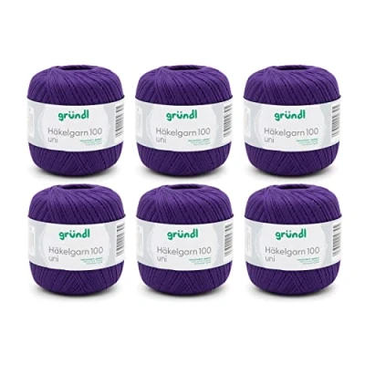 Gründl Häkelgarn 100 Uni (crochet wool, knitting yarn, mercerised cotton yarn for crochet made of 100% cotton, g / 566 m, needle size: 1.5 2mm, 6 x g), Purple