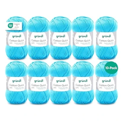 Gründl Hand Knitting Yarn, Cotton, Water Blue, 10 x 50 g