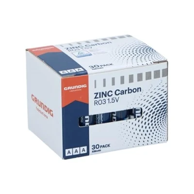 Grundig AAA Zinc Carbon Batteries Pack of 30 RO3 1.5V 325mAh for Remote Control Clock Kitchen Scales and Small Electronic Devices