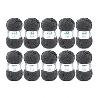 Gründl Lisa Premium Uni Pack of 10 Balls, Acrylic, Anthracite 25, 10x 50g