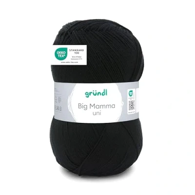 Gründl Wool Big Mamma Plain XXL for Knitting Yarn Soft and Skin Friendly 100% Polyacrylic 1 Ball 400 g / 1040 m Needle Size 3.5 4.5 Black