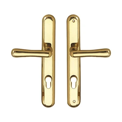 GRUNDMANN 107750 Handle Set Elegant Safety Fitting on Long Plate PZ 88, Door ÖNORM, Polished Brass, Silver