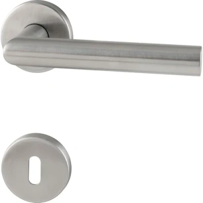 Stainless steel fittings: robust L-shaped handle set made of matt stainless steel, ideal for modern and functional door solutions With return spring: equipped with return spring for stable return of the handle, ensures high functionality and durability Easy to install: suitable for doors with a thickness of 40 mm, includes wood screws for easy attachment Box contents: 1x GRUNDMANN handle set L-shape on rosette, BB, matt stainless steel, Manufacturer: GRUNDMANN