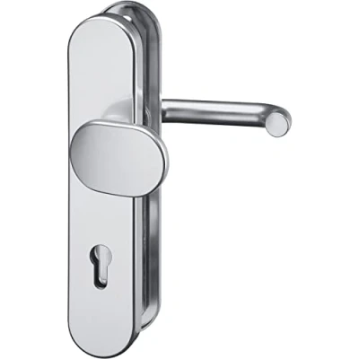 GRUNDMANN 117477 Silver FH 1752 Door Handle on Long Plate PZ 88, U Shape and Knob ÖNORM, Anodised Aluminium