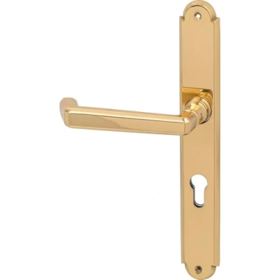 Fire protection: the fire protection handle set Alt Vienna on long plate made of polished brass - suitable for doors with a thickness of 38 to 72 mm Quality: complies with class 4 according to EN 1906 and is tested according to DIN 18 273FS for fire protection - the set is spring-supported and rotatable Specifications: Model: 118852 | Square pin: 9 mm (not included) | Hole: PZ 88 | Note: suitable for contract and fire doors and EN 179 compatible with approved locks and original pins Box contents: 1x handle set Alt Vienna – door handle on long plate with PZ 88 holes, polished brass – left version, Manufacturer: GRUNDMANN