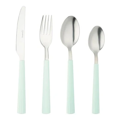 ATTRACTIVE AND COLOURFUL: Elevate your dining experience with our 16 piece cutlery set featuring a modern stripe design with a square-edged finish, providing a contemporary yet distinctive look. ERGONOMIC DESIGN: Each cutlery set is crafted with high-quality stainless steel for durability and precision, complemented by ergonomically designed handles that ensure comfort and a secure grip. FOUR COLOURS: The handles are available in four stunning colours: black, white, blue, and coral, allowing you to match your tableware or add a pop of colour to your meals. CONTENTS: Perfect for casual dining or special occasions, this set includes essential pieces 4 table knives, 4 table forks, 4 dessert spoons, 4 teaspoons, for a complete dining experience! EASY CLEAN: Its sleek and minimalist design is made to withstand daily use and can be easily cleaned in the dishwasher.