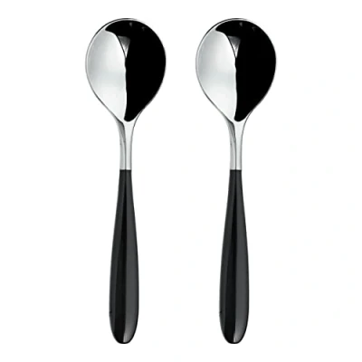 Grunwerg 2SUS650BK Yin & Yang Soup Spoons, Stainless Steel, Black
