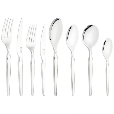 The Rayon 44 Piece Cutlery Set for 6 people is a premium dining collection that brings both elegance and functionality to your table. Crafted from high-quality 18/10 stainless steel, this set is finished with a high polish mirror shine, giving it a sophisticated and modern appeal. The set includes 6 table knives, 6 table forks, 6 dessert spoons, 6 teaspoons, 6 dessert knives, 6 dessert forks, and 6 soup spoons, covering all the essential utensils needed for a complete and refined dining experience.Each piece in the Rayon set is carefully designed in Sheffield, a city with a rich heritage of fine cutlery craftsmanship. Known for its superior standards, Sheffield is the birthplace of this beautifully crafted set, ensuring exceptional durability and precision in every piece. The high polish mirror finish not only adds to the visual appeal but also makes the cutlery easy to maintain, keeping it looking pristine after every use.The standout feature of the Rayon set is the long flute grooves along the handle. These grooves add a touch of elegance while providing a comfortable, ergonomic grip, making each utensil a joy to use. Whether you’re cutting through a hearty meal or delicately enjoying dessert, the handles offer balance and ease of handling, elevating your dining experience.The set has a luxurious, heavyweight feel that speaks to its quality and durability. The weight of each piece contributes to the overall feeling of refinement and strength, making it perfect for both everyday meals and more formal occasions. The substantial feel of the cutlery enhances your dining experience, giving it a sense of sophistication and luxury.In addition to its exceptional craftsmanship, the Rayon 44 Piece Cutlery Set is packaged in eco-friendly, plastic-free materials. This environmentally conscious packaging ensures that the set is not only a beautiful and functional addition to your table but also a sustainable choice. You can enjoy the elegant design and the lasting quality of this set while being mindful of the environment.The Rayon 44 Piece Cutlery Set for 6 people is the ideal choice for those seeking a blend of style, durability, and sustainability. Whether for casual dinners or formal gatherings, this set is sure to impress, adding a refined touch to any dining occasion. With its superior craftsmanship, luxurious feel, and eco-friendly packaging, the Rayon set offers both beauty and practicality, making it a lasting addition to your home.