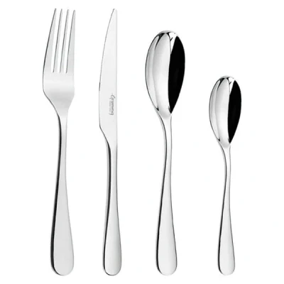 Kitchen KnivesThe Sheaf 24 Piece Cutlery Set for 6 People is a beautiful and functional collection, crafted from premium 18/10 stainless steel with a high polish mirror finish that highlights its sophisticated design. This set includes 6 table knives, 6 table forks, 6 dessert spoons, and 6 teaspoons, making it an ideal choice for intimate meals or casual dining occasions.Designed in Sheffield, the Sheaf collection showcases a slender hourglass pattern with smooth, rounded ends that provide both comfort and style during use. Each piece is crafted with a 3.5mm gauge, which adds a luxurious weight, offering a balanced and sturdy feel in the hand.With its perfect combination of elegance, durability, and functionality, this set is a timeless addition to any dining table. Whether for everyday dining or special occasions, the Sheaf 24 Piece Cutlery Set ensures long-lasting quality and enduring style for years to come.