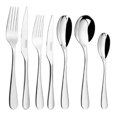 Harts of SturSimple, yet elegant, this Grunwerg Sheaf 56 Piece Cutlery Set features smooth round ends with a slender hourglass pattern. Sheaf is named after the famous river Sheaf which runs through Sheffield into the river Don. Crafted from 3.5mm gauge 18/10 premium stainless steel and boasting a high polish mirror finish, Sheaf cutlery is well balanced and weighted to complement any table setting. This cutlery set contains 8x table knives, 8x table forks, 8x dessert spoons, 8x teaspoons, 8x dessert knives, 8x dessert forks and 8x soup spoons.Sheaf cutlery is part of the Grunwerg Rivers range. Named after the best known rivers of South Yorkshire, the collection reflects Yorkshire's industrial heritage and its continued passion for cutlery design and manufacture. Crafted from 3.5mm gauge, 18/10 stainless steel, the Rivers range of cutlery is well balanced and weighted to provide both strength and comfort.Although this 8 person cutlery set is dishwasher safe, washing by hand is always recommended to preserve its look over time.This Grunwerg Sheaf 56 Piece Cutlery Set is supplied with a manufacturer's lifetime guarantee.  Knives are not for sale to persons under the age of 18. - all knives and bladed products are delivered by Age Verified Delivery (AVD). The carrier may request proof of age in order to deliver your parcel. If proof of age is not available, or the recipient is underage, the carrier will refuse to deliver.