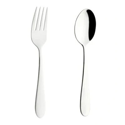CONTENTS: A small fork and spoon suitable for children as they progressing towards using adult size cutlery MATERIAL - High quality, highly polished stainless steel. Properties: dishwasher safe, dimensionally stable, hygienic, tasteless, acid-proof and indestructible CLASSIC DESIGN - The cutlery has a timeless, elegant design and is equipped with ergonomically shaped handles that are comfortable and secure in the hand. Perfect for everyday wear, Windsor cutlery is particularly sturdy due to its high material thickness and fits on any table and every combination of decorations and porcelains EASY CLEAN – All Windsor Carded Products are dishwasher safe, though hand washing is recommended for optimal quality maintenance 2 YEARS MANUFACTURER'S GUARANTEE against production errors