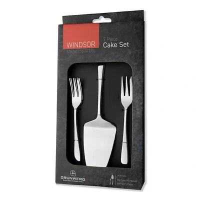 Grunwerg Windsor Carded 7 Piece Pie Cake Slice & Forks Set 7BXCAKWDR, 18/0 Stainless Steel, Silver