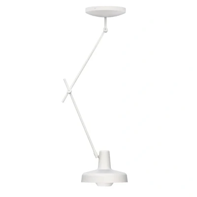 Adjustable distance ceiling lamp Arigato Whether in the living room or as a functional light source in the study - the ceiling lamp Arigato of the Croatian manufacturer GRUPA convinces with flexibility and pleasant light. It is equipped with a steel structure consisting of a triple jointed arm and a round shade made of aluminum, which are connected with joints. Thus, the positioning and orientation of the shade can be adjusted to suit the circumstances. Visual comfort is enhanced thanks to the screen that shields the direct light of the lamp to be used. At the same time, the white lacquered interior of the shade supports low-loss light emission. - made in Europe
