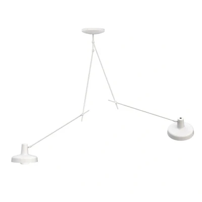 Lights.coAdjustable Arigato semi-flush ceiling light with two lampshades The 2-bulb ceiling lamp developed by Croatian manufacturer GRUPA is a versatile and adjustable light source for living areas and studies. Its slim structure consists of a short upper arm and two longer arms attached to it, each of which is divided into two sections and holds a round aluminium lampshade. Joints connect the sections so that the position and orientation of the lampshades can be changed as required. The lampshades themselves are also cleverly designed. The bulbs are placed behind screens to optimise visual comfort. In addition, the white interior coating supports efficient light emission. - Made in Europe