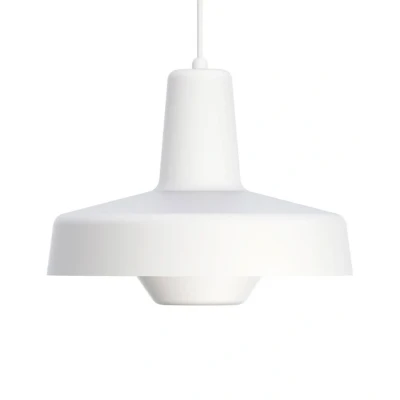 Arigato pendant light – round lampshade with glare shield The single-colour finish and timeless design allow the 1-bulb Arigato pendant light to be combined with numerous interior design concepts. The hanging light from Croatian manufacturer GRUPA is not only ideal for use in the living room or dining room – it can also be used to comfortably illuminate a desk, as the bulb (not included) is placed behind a diffuser. At the same time, the inside of the round aluminium lampshade is painted white, which promotes low-loss light emission. - Made in Europe