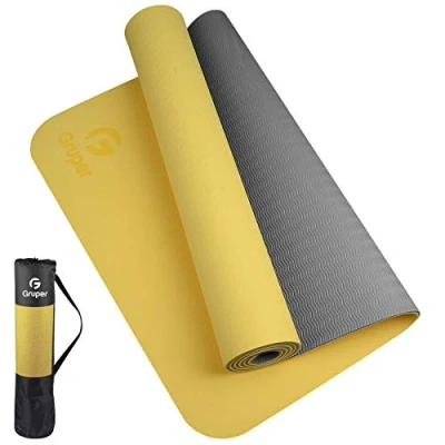 Gruper TPE Yoga Mat,Pro Mat Eco Friendly Non Slip Fitness Exercise with Carrying Strap,Workout for Yoga, Pilates and Floor Exercises (Goose yellow + Gray, Thickness 6mm(1/4 inch))