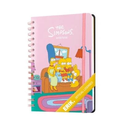 The Simpsons Merch - Make each day memorable with 2026 diary A5 week to view featuring iconic scenes and hilarious quotes from the legendary Simpsons family. Official The Simpsons merchandise. Back To School Supplies - This 12 month school diary 2025-2026 week view spans from August 2025 to July 2026, offering a week to view layout that facilitates effective organisation throughout the academic year. Includes 178 dotted pages of high-quality 100gsm paper, ideal as work diary, school year diary 25/26 or teacher planner 2025-2026 A5. Weekly Planner 2025-2026 - Measuring 5.8 x 8.3 inches / 14.8 x 21 cm, the student planner 2025-2026 academic diary features sturdy soft touch hardcover, reinforced wire-o binding and an elastic band closure, ensuring durability and ease of use for daily scheduling. Includes 2025-2026 calendar, yearly planner, word search puzzle, colouring page, schedule, monthly calendar and pages for notes. Back To School Stationery - A5 diary 2026 week to view is made of FSC certified paper from responsible sources and includes 2 pages full of stickers, 2 bookmarks and a document pocket in the back, adding a personal and practical touch to daily organisation. Ideal as academic planner 2025-2026, planner notebook or teacher diary 2025-2026. Languages: English, Spanish, French, Italian and German. Creating Your Story - Grupo Erik creates 100% official licensed stationery and merchandise inspired by the world’s most loved brands. Combining functionality and durability, our products are designed to be part of your daily life.